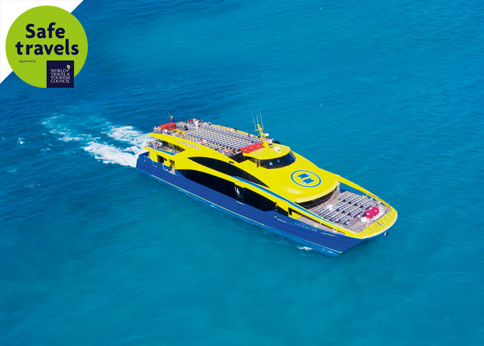 Once you have arrived on the island, a taxi will be waiting for you. It will take you directly to the fiscal dock where we board the transparent boat and begin the adventure.