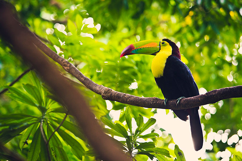 If you are patient and respectful, you will be able to approach the animals and watch a flying toucan, since they are in their natural environment and they get used to the fact that people who visit the island do not harm them. It is totally forbidden to feed any animal.